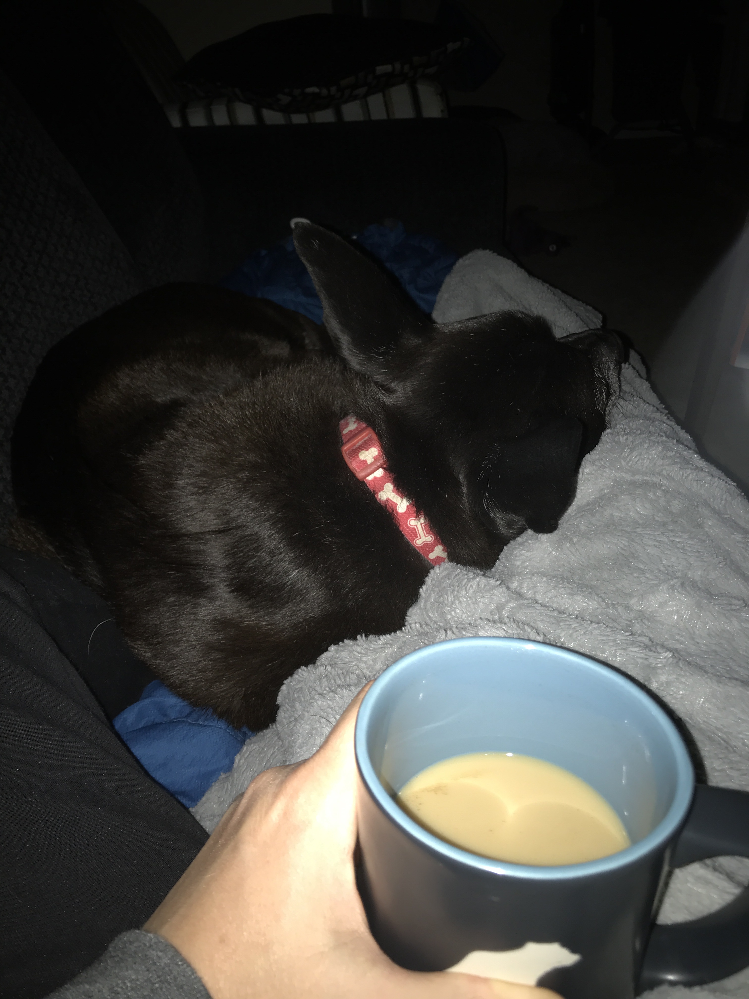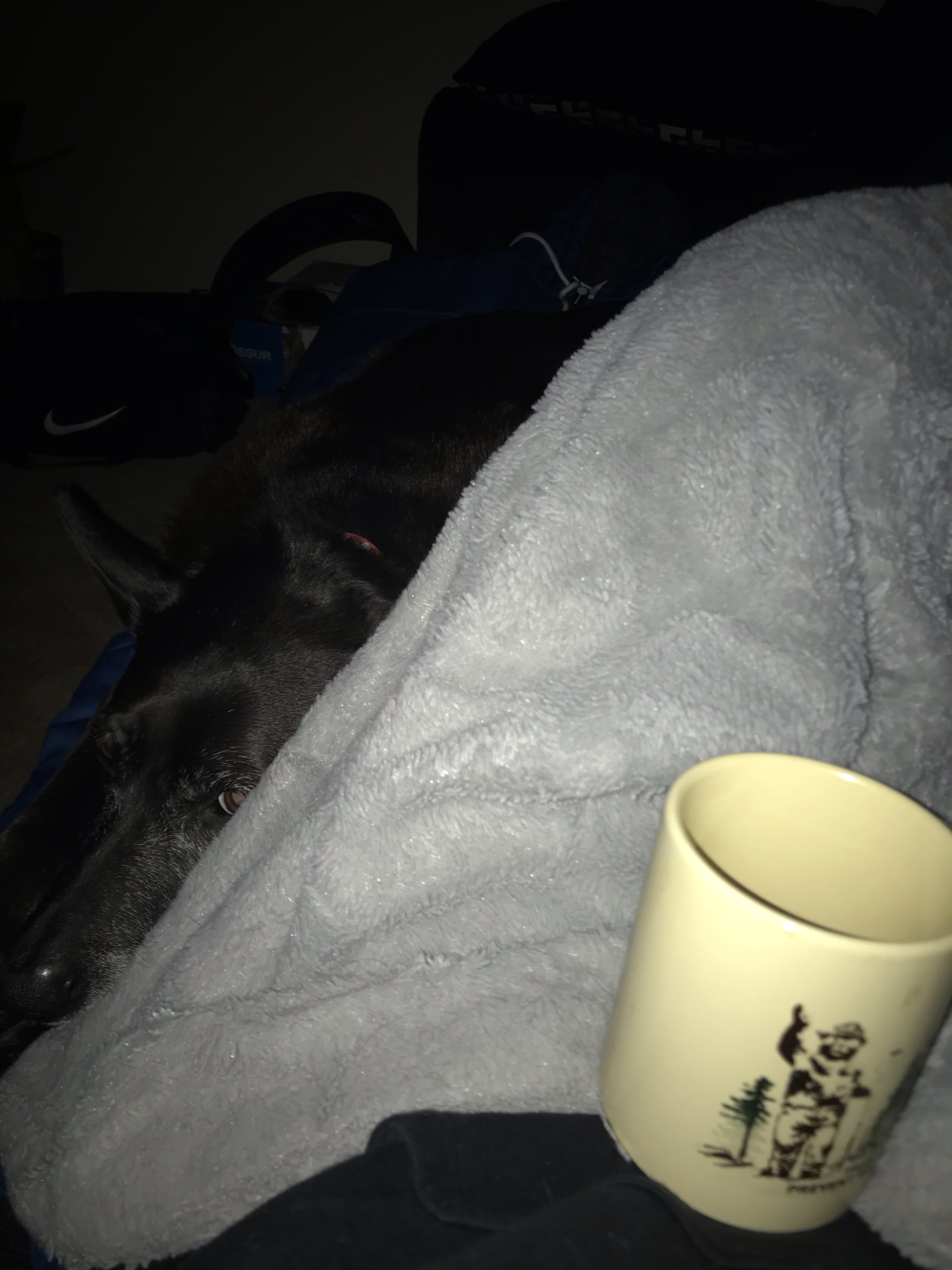 It’s really hard to get any alone time to enjoy a cup of coffee. I swear he’s like a cat in that mostly he ignores me and then has to be glued to my side!